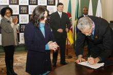 Prefeito José Fortunati na assinatura do Termo de Cessão de Uso do Centro de Saúde Vila dos Comerciários e do Hospital Independência.