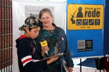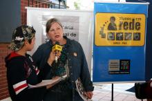 Entrevista concedida pela secretária Cleci Jurach aos estudantes do Projeto Alunos em Rede, da Escola Dolores Alcaraz Caldas. Na foto: Sec. de Educação, Cleci Jurach Foto: Mirele Pacheco/Divulgação PMPA |