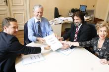 Prefeito José Fortunati recebe do Pres. CMPA, Ver. Mauro Zacher, do Ver. Aldacir Oliboni e da Sec. Geral Adj. Maria Helena Camargo Dornelles o Proj. de Lei Ficha Limpa de autoria do ver. Aldacir Oliboni