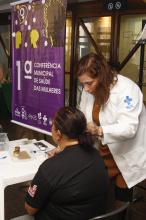 SMC e CMS na I Conferência Municipal de Saúde das Mulheres. Local: Salão de Atos da UFRGS Na foto: Práticas Integrativas Complementares (PIC'S). Demosntração de Auriculoterapia aos participantes. Foto: Cristine Rochol/PMPA |