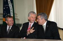 Assinatura da Ordem de início das Obras das unidades de Pronto Atendimento (UPA) e Assinatura do Termo de Compromisso entre a União, Estado e Municipio de Porto Alegre, visando abertura de novos leitos hospitalares Na foto: Prefeito José Fortunati (E), Ministro da Saúde, José Padilha (C) e Governador Tarso Genro (D) Foto: Ricardo Giusti/PMPA |