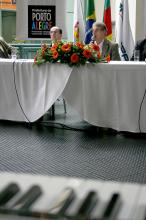Prefeito José Fogaça presente na Solenidade de Abertura da Oficina de Capacitação Musibraille. Local: Usina do Gasômetro Na foto: Sec. Acessibilidade, Tarcísio Cardoso (E) Foto: Ricardo Giusti/PMPA |