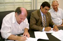 Termo de Compromisso viabiliza construção de 800 moradias. Na foto: Diretor-Geral Demhab, Humberto Goulart (C) e Procurador do Munícipio, João Batista Figueira (D) Foto: Divulgação/PMPA |
