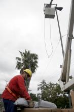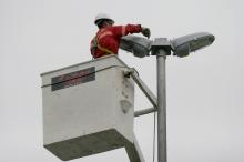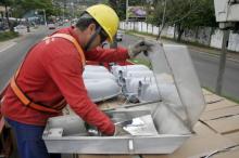 Equipe da Smov faz as trocas das luminárias do programa Porto Alegre Mais Luz em vários pontos da cidade. Foto: Jonathan Heckler/PMPA |