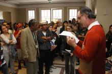 SMS e SMC, inauguram loja com produtos artesanais feitos através do GerAção POA - Oficina Saúde e Trabalho, no 2º andar da Cinemateca Capitólio. Na foto: Sec. SMS, Errno Harzheim, Sec. SMC, Luciano Alabarse, Coord. GerAção POA, Katia Barfknecht (falando) e Rep. GerAção POA, Dirceu Rohr. Foto: Cristine Rochol/PMPA |