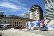 Prefeito José Fogaça durante a entrega da obra de revitalização da Praça Revolução Farroupilha e Inauguração do Mural Revolução Farroupilha End: Av. Júlio de Castilhos Na foto: Com o Min. Cidades, Márcio Fortes de Almeida, o artista plástico e autor do mural Farroupilha, Dánúbio Gonçalves (D) e o Dir. Pres. da Trensurb, Marco Arildo Prates da Cunha (E). Foto: Cristine Rochol/PMPA |