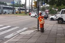 Departamento Municipal de Limpeza Urbana (DMLU) e a Secretaria Municipal de Serviços Urbanos (SMSUrb) realizam serviços de higienização das paradas e terminais de ônibus na Av. João Pessoa. Foto: Divulgação SMSUrb/PMPA |