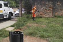 Departamento Municipal de Limpeza Urbana (DMLU) e a Secretaria Municipal de Serviços Urbanos (SMSUrb) realizam serviços de capina e roçada. Local: Praça Doutor Jurandy Barcellos da Silva, bairro Santa Tereza. Foto: Divulgação SMSUrb/PMPA |